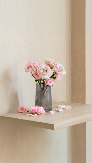 A well-chosen vase turns flowers into art. A tall, slender vase gives the roses a sense of height and confidence, while a rounded one creates a softer, more romantic atmosphere. The clean lines of glass let light dance freely, making the petals glow from within. If we add a touch of gold trim or a frosted base, the whole arrangement takes on a luxurious charm—subtle, never loud.