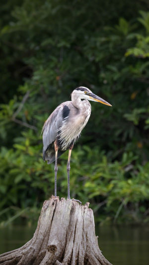 We often find the great blue heron perched near wetlands. It chooses high spots that give a clear view of water and land. Trees near rivers, mangroves, wooden platforms, and even bridge structures can become resting places.