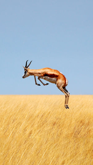 The springbok is famous for its special jumping action called pronking. When it feels excited or senses danger, it jumps high into the air several times.