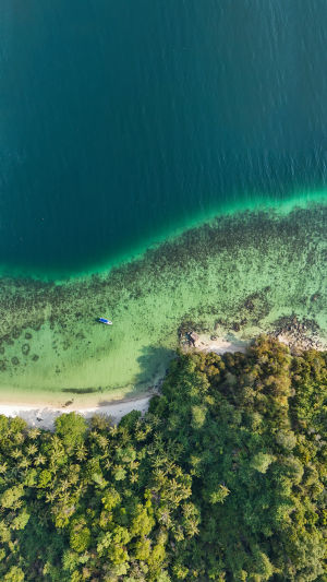 No resort infrastructure visible. No beach umbrellas. Just the island's edge doing exactly what it has always done, which is produce one of the most vivid color gradients available in any shallow tropical water anywhere in Southeast Asia.