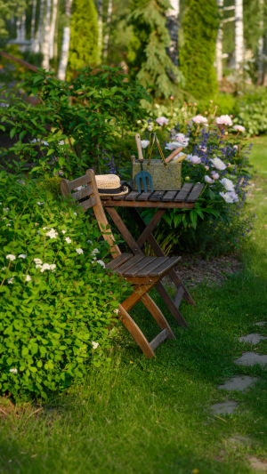 A garden is not only for planting but also for enjoying. A simple seating setup with chairs and a small table creates a space for rest and conversation. Some people also enjoy adding a gentle swing for a more relaxed experience. This area helps us enjoy the outdoor environment fully.